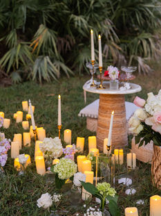 Immerse your moment in a dreamy garden atmosphere with soft candlelight and natural charm.